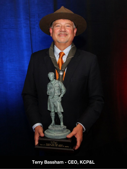 The Corporate Good Scout Award was accepted on behalf of all KCP&L employees by Terry Bassham, Chairman, President and CEO of Great Plains Energy and KCP&L. The event was chaired by Tom Freeman, Managing Director - Wealth Management, UBS Financial Services Inc., and Mike Thompson, Fox 4 Chief Meteorologist, served as emcee.